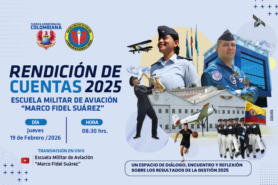 La rendición de cuentas constituye un escenario de diálogo abierto con la ciudadanía, la comunidad académica y los grupos de interés, en el que se presentarán los principales resultados de la gestión 2025, el cumplimiento de metas estratégicas, la ejecución presupuestal, los avances institucionales y los retos proyectados para el futuro, aspectos fundamentales para el fortalecimiento de la formación militar y el desarrollo aeroespacial del país.