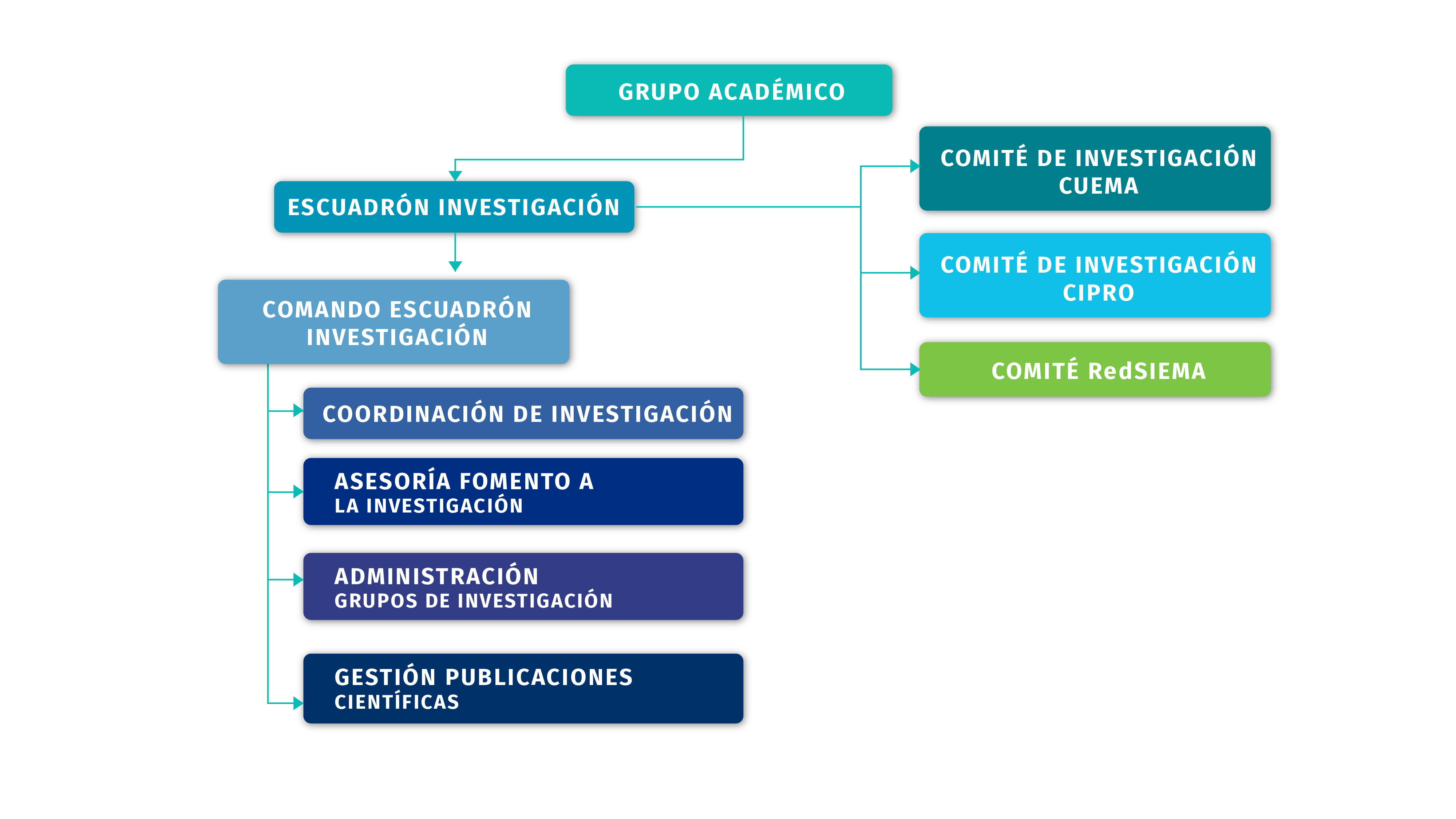 Desde lo normativo se responde a los lineamientos internos de la Escuela y la Fuerza Aeroespacial Colombiana, así como a requerimientos externos de entidades como el Ministerio de Ciencia, Tecnología e Innovación (MINCIENCIAS) y el Ministerio de Educación Nacional (MEN).